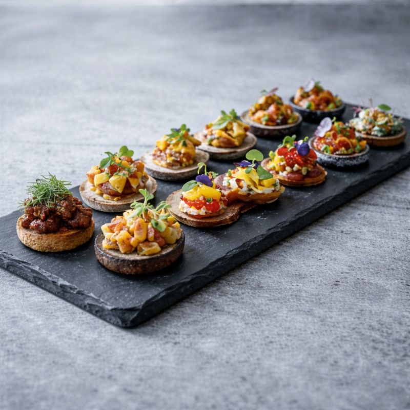 Fingerfood Bites auf Schieferplatten, im Glas oder direkt vom Bauchladen. Catering mit Fingerfood für Firmenfeier, Veranstaltung oder Teamevent.